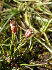 - ↑ Dítě, Daniel; Peterka, Tomáš; Dítětová, Zuzana; Hájková, Petra; Hájek, Michal (2017). "Arcto-Alpine Species at Their Niche Margin: The Western Carpathian Refugia of Juncus castaneus and J. triglumis in Slovakia". Annales Botanici Fennici. 54 (1–3): 67–82. doi:10.5735/085.054.0311. S2CID 89962452.