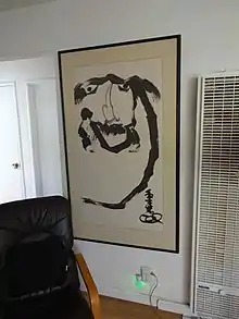 Ink brush painting of Bodhidarma created by Jung-kwang during an art class demonstration at Berkeley High School in 1979