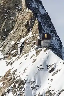 The Jungfraujoch radio relay station (German: Richtfunkstation Jungfraujoch) is a former Swisscom microwave radio relay station atop the Jungfraujoch, the mountain ridge between Mönch and Jungfrau, in the Swiss Alps. At an altitude of 3,705 meters (12,156 ft) above sea level, it was Europe's highest radio relay station.[1]