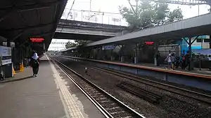 Jurangmangu Station (JMG) is a class III railway station located in Sawah Lama, Ciputat, South Tangerang. The station is located at an elevation of +25 meters above sea level and is included in Operation Area I Jakarta. Even though it is called Jurangmangu, this station is not located in Jurangmangu Village, Pondok Aren District, but is located in the south of Jurangmangu village itself.