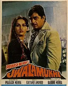 Jwalamukhi (transl. Volcano) is a 1980 Hindi movie produced by Babboo Mehra and directed by Prakash Mehra. The film stars Waheeda Rehman, Shatrughan Sinha, Reena Roy, Amjad Khan, Vinod Mehra, Shabana Azmi, Kader Khan, Pran, and Bindu.
