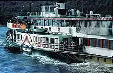 Köln-Düsseldorfer (KD) is a river cruise operator based in Cologne, Germany. The company operates a total of 14 cruise ships on the Rhine, Main and Moselle rivers. The famous KD steamer line operated on the Rhine with steamers and tourist boats. The Lorelei rock was a famed day outing for pleasure seekers.
