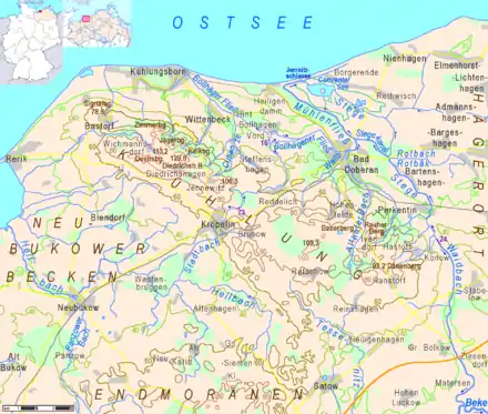 • Diedrichshagener Berg (129.8 m), highest summit in the range