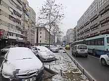 Kültür has three major boulevards running through the neighborhood that are part of two throughways. Cumhuriyet Boulevard enters the neighborhood at Cumhuriyet Square[7] and runs through the western part of Kültür, adjacent to Kordon. At the intersection with Dr. Mustafa Enver Bey Avenue, the Talatpaşa Boulevard diverges northeast,[8] along with most through-traffic. Talapaşa Boulevard consists of the northern border of the neighborhood, until it merges with Şair Eşref Boulevard, just south of Alsancak railway station.[9] Şair Eşref Boulevard is the third main road in the neighborhood, running along Kültür's eastern border. The boulevard enters Kültür at Montreux Square and continues north until the intersection with Talatpaşa Boulevard.[10]