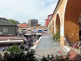 The han is located in the central historic market district that extends from the Grand Bazaar to the Eminönü neighbourhood on the shore of the Golden Horn.[1] Since the founding of the first bedesten by Mehmet II between 1456 and 1461, the Grand Bazaar developed into the city's main hub of international trade, spawning entire districts of shops, warehouses, and merchant lodgings.[2][3][4] A han, a type of urban caravanserai, was a common type of commercial structure in Ottoman architecture (and more broadly in Islamic-world architecture) which served a number of functions including lodging for foreign merchants, storage for goods or merchandise, housing for artisan workshops, and offices from which to conduct dealings.[2]