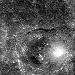 - ↑ Chapman, C. R., Baker, D. M. H., Barnouin, O. S., Fassett, C. I., Marchie, S., Merline, W. J., Ostrach, L. R., Prockter, L. M., and Strom, R. G., 2018. Impact Cratering of Mercury. In Mercury: The View After MESSENGER edited by Sean C. Solomon, Larry R. Nittler, and Brian J. Anderson. Cambridge Planetary Science. Chapter 9.
