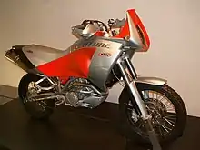 KTM's designers were innovative in defining their design, using strained and broken lines with an angular fairing. For valuable real-world experience, the engineering team asked rally pilot Fabrizio Meoni to assist.