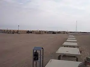 Kabals contain dining facilities, air-conditioned sleeping tents, recreation facilities and storage for weapons, tanks and their armored vehicles. The kabals are named New York, New Jersey, Connecticut, Pennsylvania and Virginia. Three others, "Diamond Head", "Camp Concho", and "Hunter" are apparently inactive. The kabals are tent cities with each camp containing large areas of tents each housing six soldiers, mess halls, rows of portable toilets, and trailers with sinks and showers and a gym. Tents are equipped with telephones. For recreation there are a variety of movies, games, and a computer room.