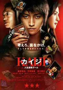 Kaiji (カイジ 人生逆転ゲーム, Kaiji Jinsei Gyakuten Gēmu, lit. "Kaiji: Life Turn-Around Game"), also known as Kaiji: The Ultimate Gambler, is a 2009 Japanese live-action film based on Gambling Apocalypse: Kaiji, the first part of the manga series Kaiji, written and illustrated by Nobuyuki Fukumoto. It is the first film of a trilogy directed by Tōya Satō and premiered in Japan on October 10, 2009. It was followed by Kaiji 2, released in 2011.