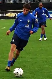 Ronaldinho states, "For two, maybe three seasons [at Milan] he was the best player in the world. There was nothing he couldn't do", while his Milan teammate Andrea Pirlo adds, "There was a point when teams just had no idea how to stop him."[207] As well as his dribbling from midfield, Kaká was also renowned for his vision and passing ability, enabling him to create chances for teammates.[208] Having performed predominantly as a playmaking attacking midfielder throughout his career, he was known for being capable of scoring goals as well as creating and assisting them.[209] A versatile player, he was also deployed in several other attacking positions throughout his career, performing as a winger on either flank,[210][211] as a supporting forward,[212] and on occasion as an outright striker,[203][213] or even in a deeper role as a midfield playmaker.[214] In addition to these characteristics, Kaká also possessed a powerful and accurate shot from both inside and outside the penalty area, with either foot,[215] despite being naturally right-footed;[216] he preferred to strike the ball with finesse rather than power, however, and had a penchant for scoring from distance with bending shots.[206] He was also an accurate penalty taker.[217][218] In 2020, 90min.com placed Kakà at number 42 in their list of "The 50 Greatest Footballers of All Time".[219]