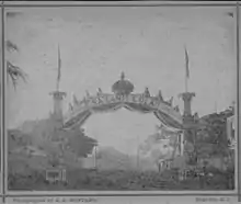 The Egyptian Gazette published Kalākaua's acceptance speech when the Grand Lodge of Egypt freemasons made him Honorary Grand Master of the Great Orient of Egypt.[58] He was honored with a state ball in Alexandria by the Khedive on June 24, the day before they left on the steamer Asia.[59][60]