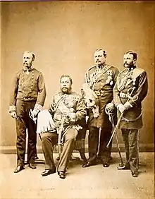 Kalākaua, his aides Charles Hastings Judd and George W. Macfarlane and cook Robert von Oelhoffen during their world tour.