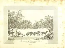 Archeologists have uncovered evidence of sled dogs during thousand year old excavations in the Kamchatka Peninsula.[2] Early 18th century writers report the abundance of sled dogs in the region and local dependence on sled dogs for transportation.[5] However, the Kamchatka sled dog was also used for clothing and spiritual purposes by the native Koryak people.[5] Koryaks believe that the door to the afterlife was guarded by dogs which had to be bribed to allow the newly deceased to pass through.[5]