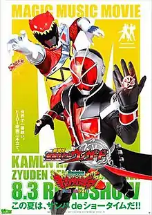 Kamen Rider Wizard in Magic Land (劇場版 仮面ライダーウィザード in Magic Land, Gekijōban Kamen Raidā Wizādo In Majikku Rando) is the 2013 film adaptation of the 2012 & 2013 Kamen Rider Series television series Kamen Rider Wizard. It was released on August 3, 2013, as a double-bill with Zyuden Sentai Kyoryuger: Gaburincho of Music.[1][2][3] The film features Takanori Jinnai as Minister Auma who transforms into Kamen Rider Sorcerer.[3] Jinnai is the oldest person to portray a Kamen Rider to date at age 54; the record was previously held by Hiroyuki Watanabe for his portrayal of Kamen Rider Gaoh in Kamen Rider Den-O: I'm Born! who at the time of filming was 51.[3]