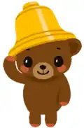 Kamikawa's mascot is Kamikki (かみっきー). He is a brown bear. He wears a helmet which resembles a bell. His favourite food is karai ramen served with rainbow trout sashimi. He loves hot springs and drawing nature. He usually ends his sentences with "powa-ru" (ぽわ~る) and "powan" (ぽわん). He is unveiled in 2014.[5]