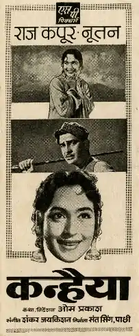 Shanno (Nutan) is devoted to Lord Krishna, also known as Kanhaiya. Consequently, she often wanders off alone in the woods dancing and singing to the flute notes of her Kanhaiya. She accidentally meets Kanhaiya (Raj Kapoor), the village drunk and falls in his arms assuming him to be her "Kanhaiya," the Lord Krishna.[1] The gossip spreads that Kanhaiya and Shanno are having an affair, and in order to stay in the same village, they must get married. Shanno, still under the misconception regarding Kanhaiya, is thrilled and gives her consent. During the marriage, Shanno is shocked when she realises who "Kanhaiya" really is – the town drunk and idler who has taken advantage of her love for Lord Krishna, and now insists on marrying her. What the Village Panchayat does when Shanno refuses to marry Kanhaiya, and how she is even ready to light herself on the funeral pyre to prove her piety, and how they cope when the village is swamped with plague, forms the basis for the rest of the story. At the end, Shanno realizes he really is Kanhaiya.