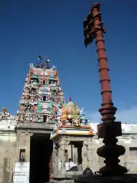 The presiding deity is revered in the 7th century Tamil Saiva canonical work, the Tevaram, written by Tamil saint poets known as the Nayanmars and classified as Paadal Petra Sthalam.[1] A granite wall surrounds the temple, enclosing all its shrines. The temple has a five-tiered Rajagopuram, the gateway tower.