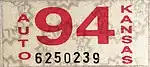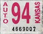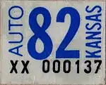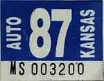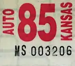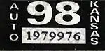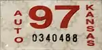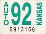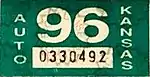 - 1 2 Tanner, Eric N. "Kansas Passenger License Plates". allaboutlicenseplates.com. Retrieved December 4, 2020.