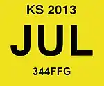 These plates are no longer issued, but still valid if displayed on the original vehicle it was registered to. | |