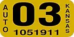 The owner can also choose to use an original Kansas license plates with correct year stickers instead (Year of Manufacture). | |
