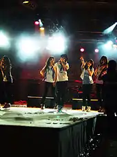 In June 2009, the group stated they would make their comeback in late July, with their concept upgraded.[33] The first teaser pictures of the group were then released in mid-July, showing radical changes in the group's style and also saw a slight return of their "strong and mature" image previously seen from their debut.[34][35] Their single "Wanna" was released on July 28, 2009, and immediately charted on various digital music charts.[36] The music video was released on July 29, with the full album, Revolution, available online on July 30.[36] Comeback activities commenced on July 31, beginning with KBS's Music Bank; the group performed both "Wanna" and "Mister".[37] "Mister" proved to be popular with netizens due to the "butt dance" that is featured prominently in the choreography.[37][38] Due to the popularity of "Mister", Kara's overall popularity increased, evidenced by an influx of advertisement requests by various companies; in total, they had more advertisements in October 2009 than they had had the previous two years.[39] "Wanna" also became a number one single for the group and won the Mutizen award on August 30, 2009, from Inkigayo.[40] During promotions for Revolution, the group also performed internationally, including at Bangkok's Parc Paragon.[41]