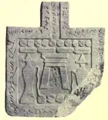 Karanog also contained no less than 100 objects—offering altars to Hotep and stelae—bearing inscriptions in Meroitic cursive. One stela containing both Meroitic and Egyptian demotic may be the only case of the latter found south of Egypt.[1]