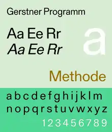 Specimen of the typeface Gerstner Programm