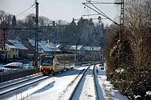 The Karlsruhe–Mühlacker railway is a railway line in the west of the German state of Baden-Württemberg. It was built between 1859 and 1863 and is one of the oldest railways in Germany. It was built as the second connection between the networks of the Grand Duchy of Baden State Railway and the Royal Württemberg State Railways and it still constitutes an important east–west route in southern Germany.
