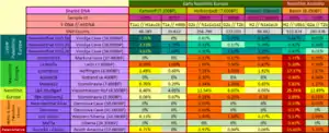 Dodecad [Globe13]67.4% Mediterranean + 16.5% Southwest Asian + 16% North European61% Mediterranean + 19.7% Southwest Asian + 19.2% North European