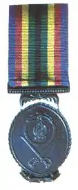 The Karyakshama Seva Vibhushanaya (KSV, Efficient Service Order) (Sinhala: කාර්යක්ෂම සේවා විභූෂණය kāryakṣama sēvā vibhūṣaṇaya) is a service medal awarded by the Military of Sri Lanka to commissioned officers of the Sri Lanka Army Volunteer Force, in recognition of "...long, meritorious, loyal and valuable service of proven capacity". Established on 7 January 1986, it does not confer any individual precedence.