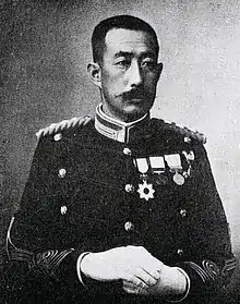 Viscount Kataharu Matsudaira (松平 容大, Matsudaira Kataharu, July 11, 1854 – June 11, 1910) was a Japanese man who served as the daimyō of Tonami han (the former Aizu han) in the early Meiji Era. Born the eldest son of Matsudaira Katamori, he succeeded Katamori's adopted son Nobunori in 1869. As the Meiji government had granted the former daimyō family of Aizu a 30,000 koku holding in northern Honshū, Kataharu became its daimyō, with Katamori technically in his "care."