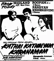 Kathai Kathaiyam Karanamam (transl.Stories, stories and the reasons for them) is a 1987 Indian Tamil-language film written and directed by Y. G. Mahendran. It is based on the play [Im]perfect Murder by P. V. Y. Raman. The film stars Jaishankar, Rajeev, Mahendran and Pallavi. It was released on 18 September 1987.