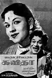 Kavitha is a 1962 Indian, Tamil language film directed by T. R. Raghunath. The film stars M. R. Radha and Rajasulochana. It was released on 2 September 1962.[1][2]