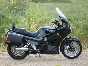 The Kawasaki Concours, known in Europe as the 1000GTR and in USA as the ZG1000, is a 997 cc, six speed, four cylinder, liquid-cooled sport touring motorcycle with shaft drive. The bike can reach speeds over 190 km/h (120 mph), offers nimble handling and – with its full fairing, tall screen, twin locking panniers, and 28 litres (6.2 imp gal; 7.4 US gal) fuel capacity – is suited to cross-country two-up touring.