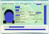![]() The data page of a contemporary Kazakhstan biometric passport | |