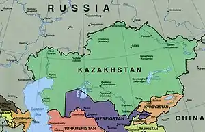 - ↑ Kassymova, Didar; Kundakbayeva, Zhanat; Markus, Ustina (2012). Historical Dictionary of Kazakhstan. Scarecrow Press. p. xxv.