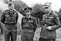 Sosnkowski was against waging an insurrection in Warsaw, but Prime Minister Stanisław Mikołajczyk prevailed and the Warsaw Uprising started on 1 August 1944. Sosnkowski turned to the Western Allies for help, but when no significant support for the uprising materialized, he strongly criticized the Allied leaders. Under the pressure from Winston Churchill, Sosnkowski was demoted from the commander-in-chief position on 30 September 1944. In November 1944, he left the United Kingdom and went to Canada, where he settled.[1][6] Because of his unyielding attitude toward the Soviet Union, he was denied US and British visas until 1949.