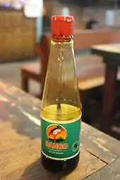 Sweet soy sauce (Indonesian: kecap manis) is a sweetened aromatic soy sauce, originating in Indonesia, which has a darker color, a viscous syrupy consistency and a molasses-like flavor due to the generous addition of palm sugar or jaggery.[1] Kecap manis is widely used with satay. It is similar to, though finer in flavor than, Chinese Tianmian sauce (tianmianjiang).[1] It is by far the most popular type of soy sauce employed in Indonesian cuisine, and accounts for an estimated 90 percent of the nation's total soy sauce production.[2]