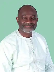 Kennedy Ohene Agyapong (born on June 16, 1960) is a Ghanaian politician and businessman who represents Assin Central in parliament as a member of the New Patriotic Party.[2][3] He was first elected as a member of parliament in 2000 to the seat of Assin North.[4] He retained his seat in the year 2004[5] and 2008 parliamentary elections.[6] In 2012, he was elected in the new seat of Assin Central and was re-elected in 2016. He also retained his seat in the 2020 general elections.[7] He is currently the Chairman of the Parliament's Defense and Interior Committee.[8] As an aspirant in 2023 for the presidential candidacy of the NPP,[2] he lost to Mahamudu Bawumia.