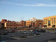 Beginning in 2008, several redevelopment projects in the downtown area, some of which had been discussed for decades, were put into motion and resulted in nearly $110 million (~$148 million in 2022) in total investment from public and private sources. The first of these was the Phoenix Project, a development privately financed by Kent resident Ron Burbick that renovated and expanded a section of commercial space along East Main Street.[28] Included in the project was construction of a pedestrian alleyway lined with small shops, eventually known as Acorn Alley, which opened in 2009. A second phase of Acorn Alley opened in late 2011.[29] Other aspects of the redevelopment, which include a 360-space parking deck and bus transfer station, a hotel and conference center, and three separate mixed-use buildings, began to take shape in 2010 following the demolition of several buildings in a four block area. New offices for Ametek and the Davey Tree Expert Company opened in late 2012 along with several new small businesses on the first floors of each building.[30] The hotel, operated by Kent State University, opened in June 2013 and the new parking garage, operated by the Portage Area Regional Transportation Authority (PARTA) opened April 30, 2013, as the Kent Central Gateway.[31] In addition to parking, the facility functions as PARTA's main bus transfer station and has storefronts on the ground level facing East Erie Street.[32][33] Included in the redevelopment was the purchase and renovation of the old Kent hotel, which first opened in 1920. After being mostly vacant since 1979 and completely vacant since 2000, it re-opened on April 1, 2013, as the new home to the Kent location of Buffalo Wild Wings and also houses offices, a wine and jazz bar, and apartments.[34] A five-story mixed-use building called The Landmark was completed in 2014 and construction started in November 2015 on an additional five-story mixed-use building featuring microapartments, scheduled to be completed in 2016.[35][36] The developments attracted the attention of The Plain Dealer and The New York Times and earned the city and university the 2013 Larry Abernathy Award from the International Town–Gown Association in recognition of the positive town–gown cooperation and collaboration.[37][38][39]