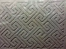 Key pattern is the generic term for an interlocking geometric motif made from straight lines or bars that intersect to form rectilinear spiral shapes.[1][2][3] According to Allen and Anderson, the negative space between the lines or bars of a key pattern “resemb[es] the L- or T-shaped slots in an ordinary key to allow it to pass the wards of the lock.”[4]