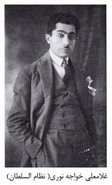 The Khajeh-Nouri —alternatively transliterated as Khajenouri, Khajenoori, Khwajahnuri, Xojanori, etc.— family is one of the most prominent aristocratic families in the contemporary history of Iran, emerging from the ancient imperial era. The family originated from the Baladeh area in Mazandaran, and held local power during the late Safavid, Afshari, and Zand dynasties. From the beginning of the Qajar period, the family entered politics through bureaucratic and military positions. The family was based in Tehran, where they served in the Qajar court. Throughout the Qajar and Pahlavi periods the Khajeh Nouri family held high political positions and strong relations with the dynasties. The name translates to "Lord of Light" in Persian.[1]