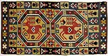 The Marby Rug is a knotted-pile carpet found in a church in Jämtland, central Sweden in 1925. It is believed to have come from fourteenth- or fifteenth-century Anatolia. It depicts pairs of birds facing a tree, under the wings of a great bird, and is the only known Eastern rug with this design.[3] Multiple Swedish textiles copied this design, possibly copying this specific rug, and one such cross-stitch embroidery is in the Khalili Collection.[31]