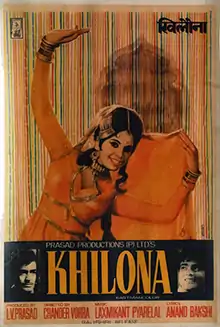 Khilona (transl. Toy) is a 1970 Indian Hindi-language drama film, produced by L. V. Prasad under the Prasad Productions Pvt. Ltd. banner and directed by Chander Vohra. It stars Sanjeev Kumar, Mumtaz, Jeetendra in lead roles and music composed by Laxmikant–Pyarelal. The film is recorded as a "Super Hit" at Box Office India.[1] The film was a remake of the Telugu film Punarjanma (1963) and it was simultaneously made in Tamil as Engirundho Vandhaal and in malayalam as Amrithavaahini(1976).[2]