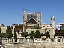 Khoja Abdulkhalik Gijduvani Complex is an architectural monument (XII-XV centuries[1]) located in the city of Gijduvan, Bukhara Region. The complex is located 50 km from the city of Bukhara and was built by Abdukholiq ibn Abdujalil Gijduvani, the founder of the Khojagan sect.[2] The complex consists of the mausoleum of Khoja Abdulkhaliq Gijduvani, the Ulugbek Madrasah, a mosque and a pool. Khoja Abdulkhaliq Gijduvani is the first representative of seven pirs in Bukhara. He became known as Khojai Jahan and founded the school of Sufism. In 1433, Timurid Mirza Ulugbek built a madrasa in front of the shrine of Khoja Abdulkhaliq Gijduvani. In 2003, the 900th anniversary of Khoja Abdulkhaliq Gijduvani was widely celebrated.[2] The Ulugbek madrasah in the complex was distinguished by its appearance. A mosque was built in this complex during the reign of Shaibani Ubaydullah Khan of Bukhara (1539–1550). In 1583, the madrasa and mosque were renovated during the reign of Bukhara Khan Abdullah Khan II (1583–1598). Verses 1-7 of Surah Alaq were mentioned on the facade of the Mirzo Ulugbek madrasah.[3] These notes were written in suls script. However, most of them have collapsed. In 1946, certain part of the Mirzo Ulugbek madrasa records were read and accordingly it was restored.[4] The tombstone of Abdukholiq Gijduvani was made of stone and the eleventh verse of Surah "Mujodala" from the Quran was written on the sides. On the short sides of the tombstone, an epitaph (inscription devoted to that person) was written.[5] The mosque in the complex of Khoja Abdulkhaliq Gijduvani was rebuilt in 2003.[6] Nowadays, all the conditions for pilgrims have been created in the complex of Khoja Abdulkhaliq Gijduvani.