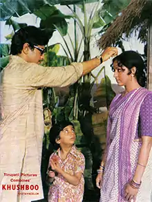 Khushboo (transl. Aroma) is a 1975 Hindi-language drama film, produced by Prasan Kapoor under the Tirupati Pictures banner, presented by Jeetendra and directed by Gulzar. It stars Jeetendra, Hema Malini and music composed by R. D. Burman. The film is based on the Bengali novel Panditmashai, by Sharat Chandra Chattopadhyay,[1] which was earlier filmed in Bengali in 1951 by Naresh Mitra. It was prolific year for Gulzar, with two more releases in the same year, Mausam and Aandhi. The haunting song "O Majhi Re" sung by Kishore Kumar, was famous both for lyrics and melody. A couple of other songs like "Do Naino Mein Aansoo Bhare Hain" and "Bechara Dil Kya Kare" were also very popular. It was praised as a beautiful film with good acting by Sharmila Tagore, Hema Malini, Asrani and Jeetendra.[1]