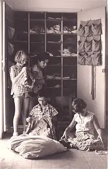 As they reached the seventh grade, the group progressed to the youth society, where they stayed until the end of twelfth grade. By this stage, the teacher and nanny separated from this group, and the adolescents would get a new team of educators. Kibbutzim from the 'HaArtzi' movement established boarding schools (mosadot), which were shared by several neighboring kibbutzim.[6] They represented the ideal of a kibbutz community 'in miniature form' and would have their own dining halls and facilities.[7]