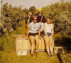 Austrian kibbutz volunteers at Kibbutz Ein HaShofet working in the apple orchard, summer of 1973