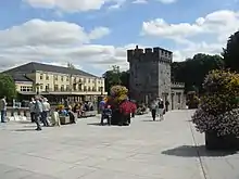 Kilkenny is a tourist destination, and its environs include historic buildings such as Kilkenny Castle, St Canice's Cathedral and round tower, Rothe House, Shee Alms House,[4] Black Abbey, St. Mary's Cathedral, The Tholsel, St. Francis Abbey, Grace's Castle, and St. John's Priory. Kilkenny is also known for its craft and design workshops, the Watergate Theatre, public gardens and museums. Annual events include Kilkenny Arts Festival,[5] the Cat Laughs comedy festival and music at the Kilkenny Roots Festival.[6]