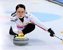 Kim Eun-jung, nicknamed "Annie"[1] (born November 29, 1990) is a South Korean curler from Uiseong. She currently skips her own team on the World Curling Tour. Kim skipped the national team from 2016 to 2018 and represented Korea on home ice at the 2018 Winter Olympics, where her team won a silver medal.[2]